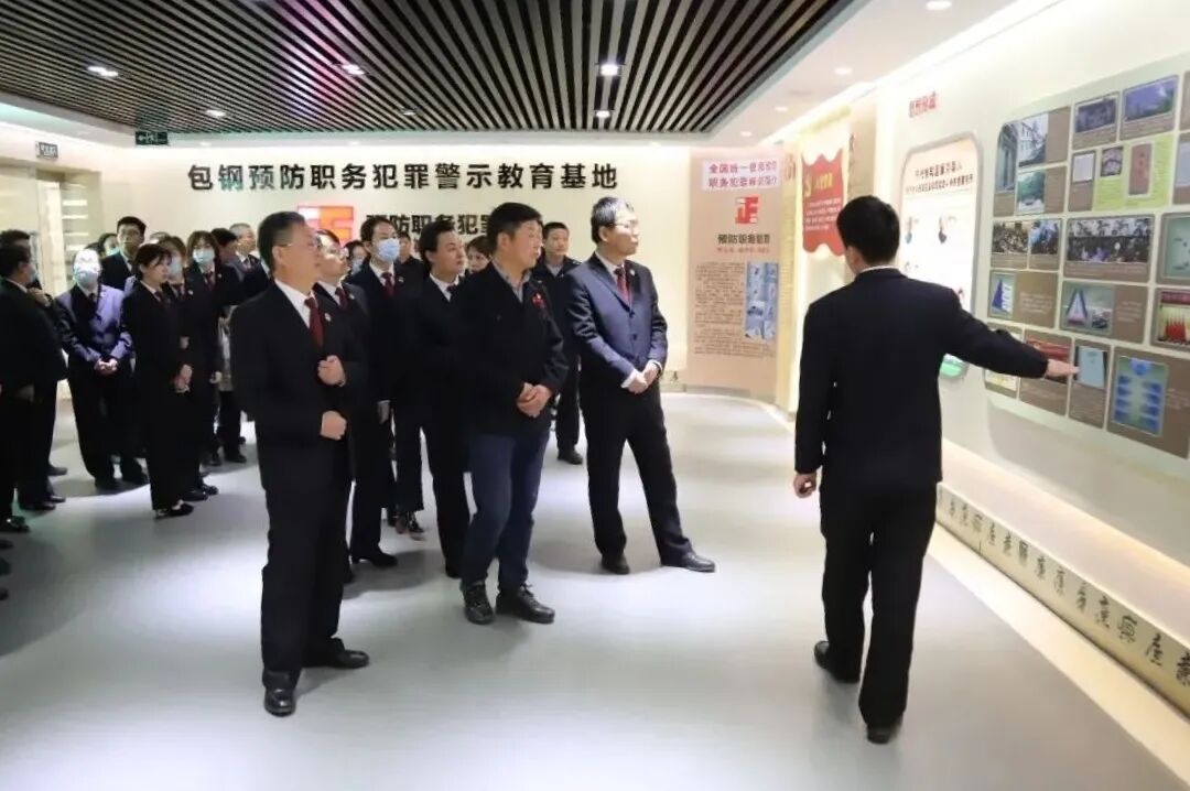 随后参观了集廉政文化宣传、警示教育、成果展示、普及反腐败知识于一体的包钢预防职务犯罪警示教育基地,通过真实鲜活的案例、图文并茂的展示和发人深思的忏悔,为干警上了一堂生动的廉政教育课,敲响了廉洁的警钟。在这里,全体干警重温了入党誓词,不忘入党初心,牢记检察使命。
