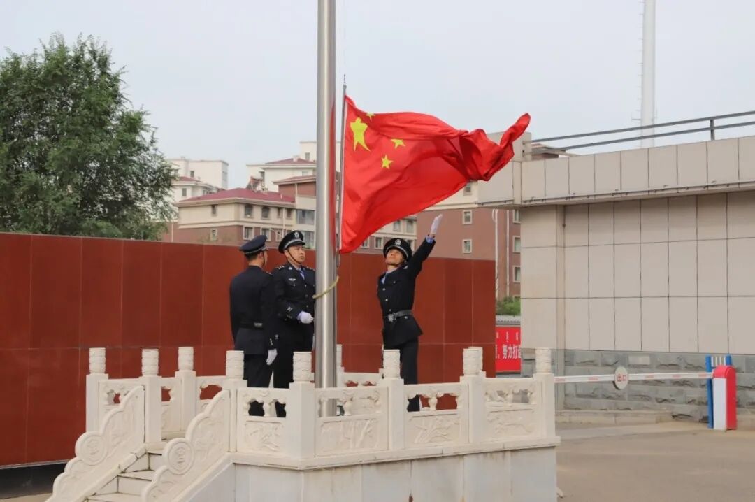 早上9时整,全体检察人员统一身着检察制服,面向国旗整齐列队,三名国旗护卫队干警精神抖擞、庄重威严,迈着整齐的步伐护送国旗走向升旗台。当雄壮的国歌声响起,鲜艳的五星红旗迎风飘扬,全体检察人员神情庄重地向国旗行注目礼,以饱满的热情唱响国歌,表达着对党和祖国的忠诚与无限热爱,庄严的升国旗仪式感染着现场每一名干警。